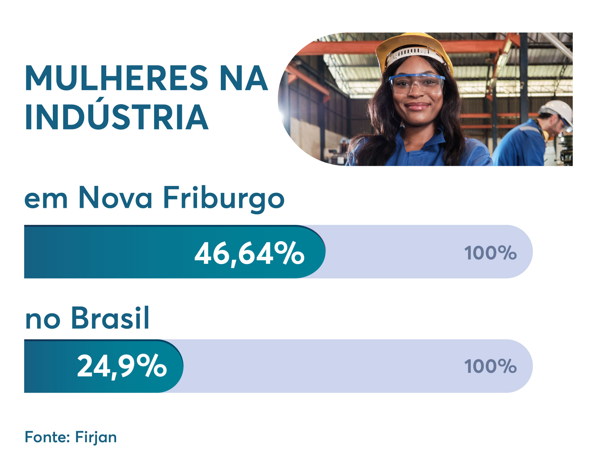 São mais de 7.800 mulheres no setor industrial de Nova Friburgo, correspondendo a 46,64% do total de trabalhadores industriais. Desse número, cerca de 80% são no setor de vestuário e acessórios. No Brasil, as mulheres representam apenas 24,9% dos trabalhadores da indústria. Nova Friburgo está acima da média brasileira na contratação de mulheres, fruto do polo de moda íntima, que conta com a garra de mulheres empreendedoras e com a força de trabalho feminina, desde a idealização das peças até a venda no mercado.