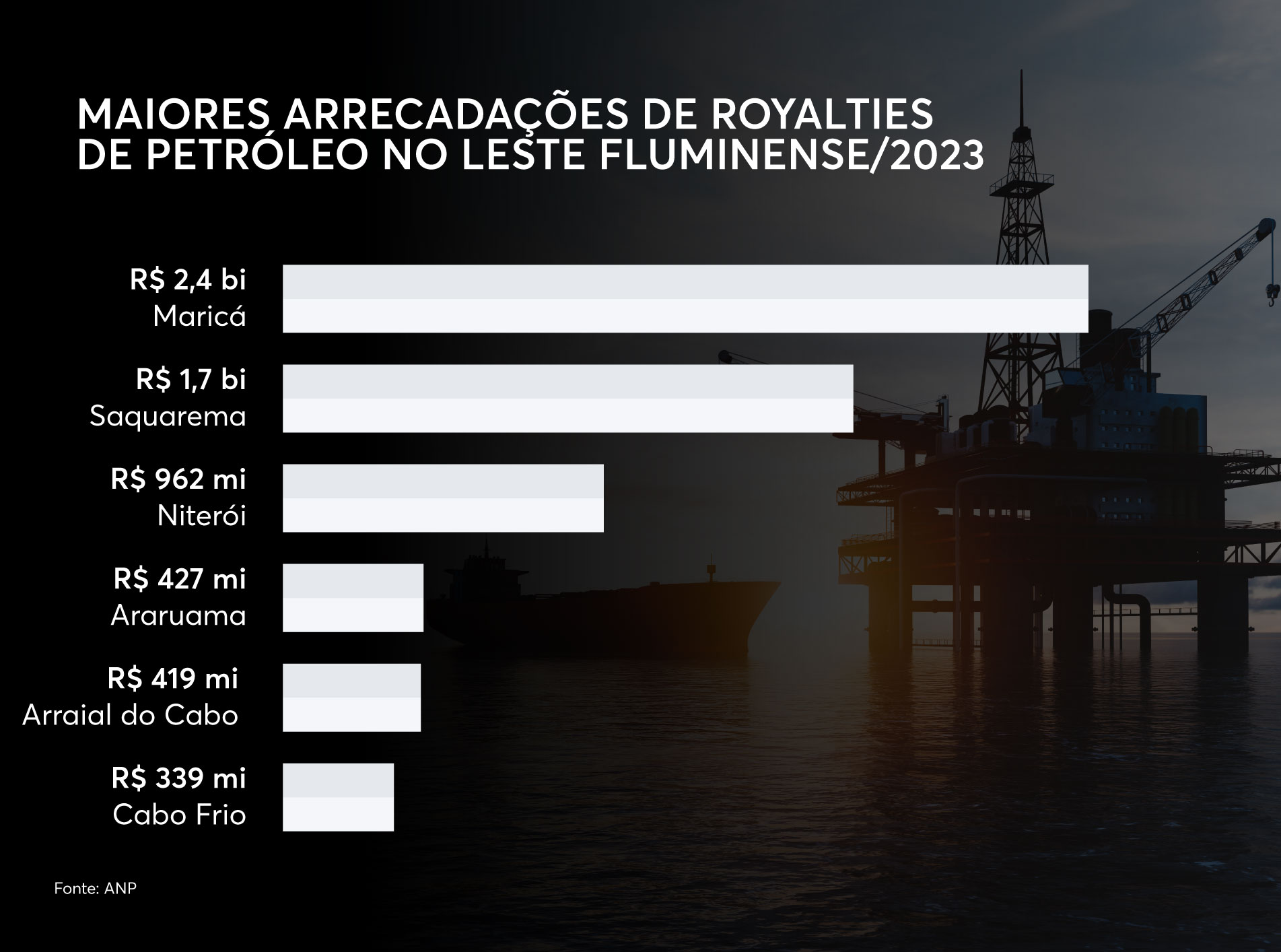 Guadagnin chama atenção para a importante vocação regional no mercado de petróleo e gás. A exploração de petróleo na Bacia de Santos rende um valor expressivo em royalties para os municípios. Maricá foi a campeã nacional, arrecadando R$ 2,4 bilhões em royalties em 2023. O município foi seguido por Saquarema e Niterói, que também ficaram entre os cinco primeiros no ranking do país, segundo a Agência Nacional de Petróleo, Gás Natural e Biocombustíveis (ANP).