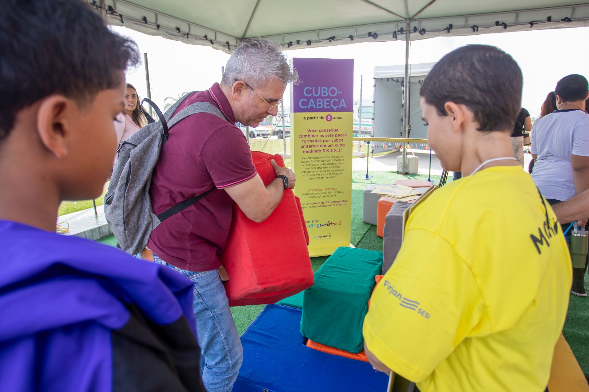 A unidade móvel, inaugurada em 2023 para contribuir com o aprendizado, é um caminhão que leva essa ideia metodológica para escolas e eventos de caráter científico, como o Festival Nacional da Matemática, organizado pelo Instituto de Matemática Pura e Aplicada (Impa), na Marina da Glória. A unidade apresenta desafios lúdicos e interativos, diferentes das atividades apresentadas em sala de aula. Algumas delas vieram do Museu de Matemática de Nova York, o MoMath.