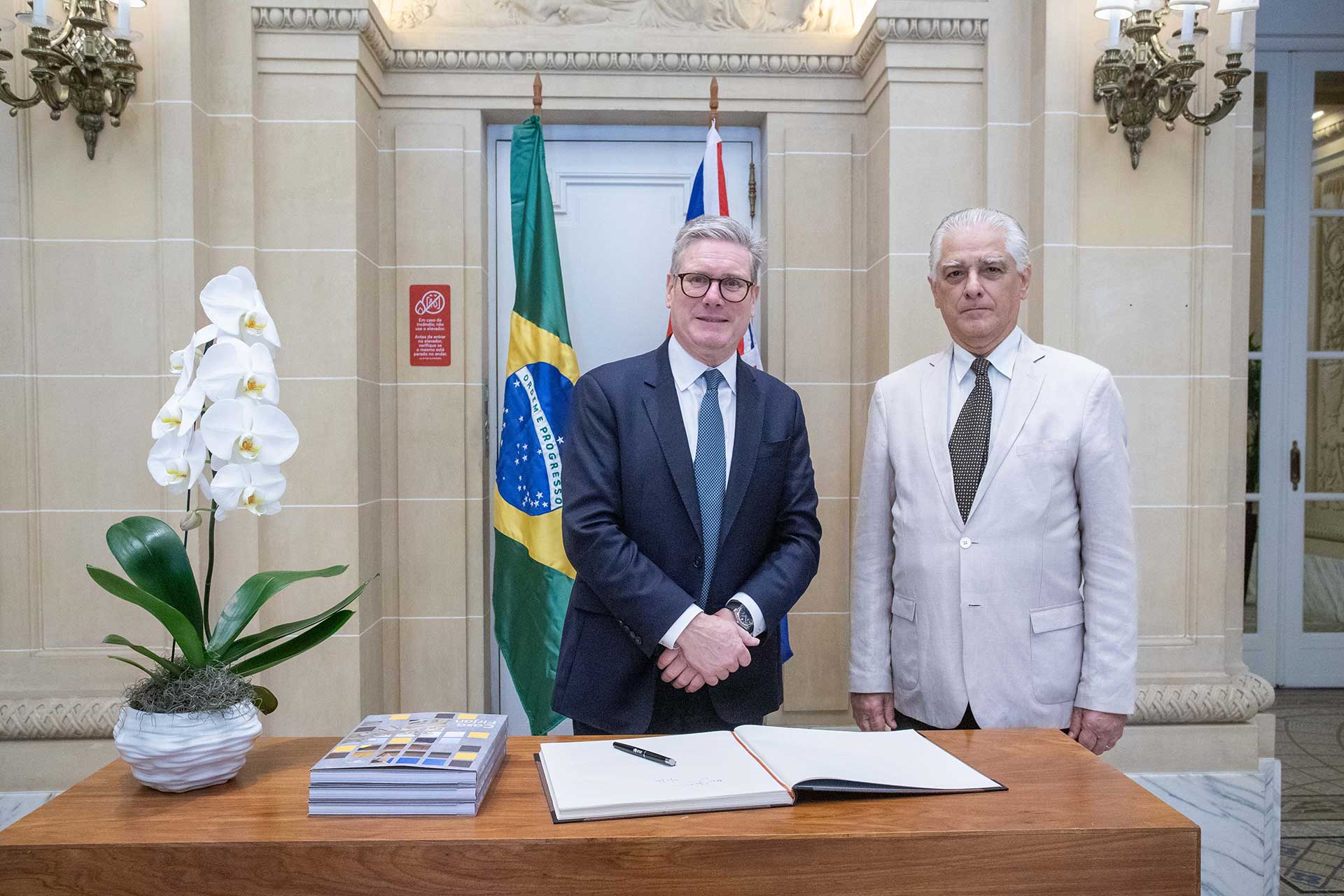O primeiro-ministro do Reino Unido, Keir Starmer, participou de uma entrevista coletiva com jornalistas britânicos e brasileiros, na Casa Firjan.