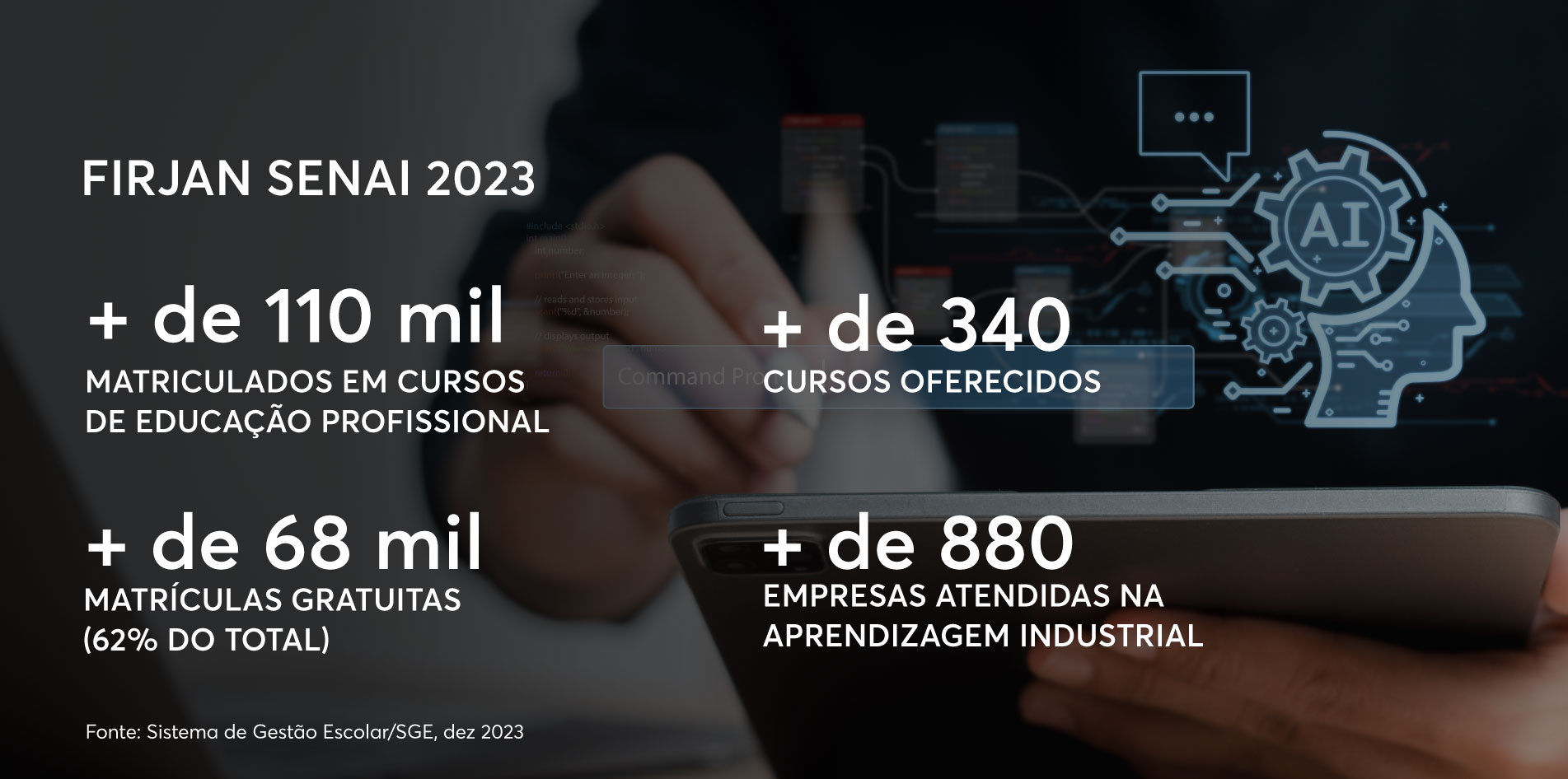 Já a Firjan SENAI forma e qualifica profissionais para atender às necessidades da indústria. São cursos de iniciação, aprendizagem, aperfeiçoamento, qualificação, técnico e de especialização. Este ano, foram mais de 68 mil matrículas gratuitas em mais de 340 cursos oferecidos.