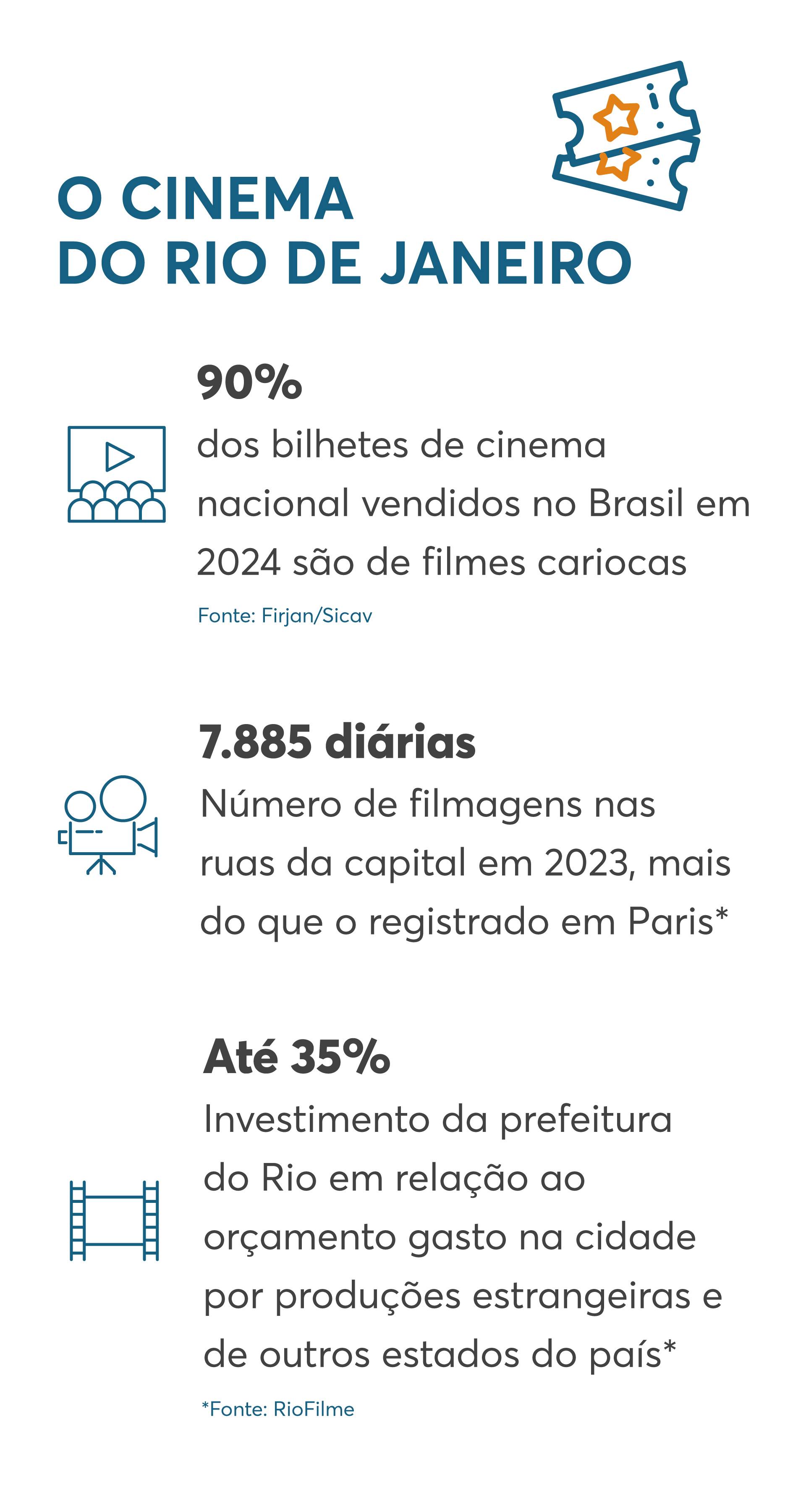 Segundo Leo Edde, os filmes cariocas tiveram 90% do market share dos bilhetes vendidos de filmes nacionais no país em 2024. Por isso, é tão importante continuar investindo no audiovisual do Rio. Outro número positivo indica que a cidade do Rio de Janeiro superou Paris em número de filmagem nas ruas em 2023: foram 7.885 diárias no ano, contra 7,4 mil da capital francesa. Os dados são da RioFilme.