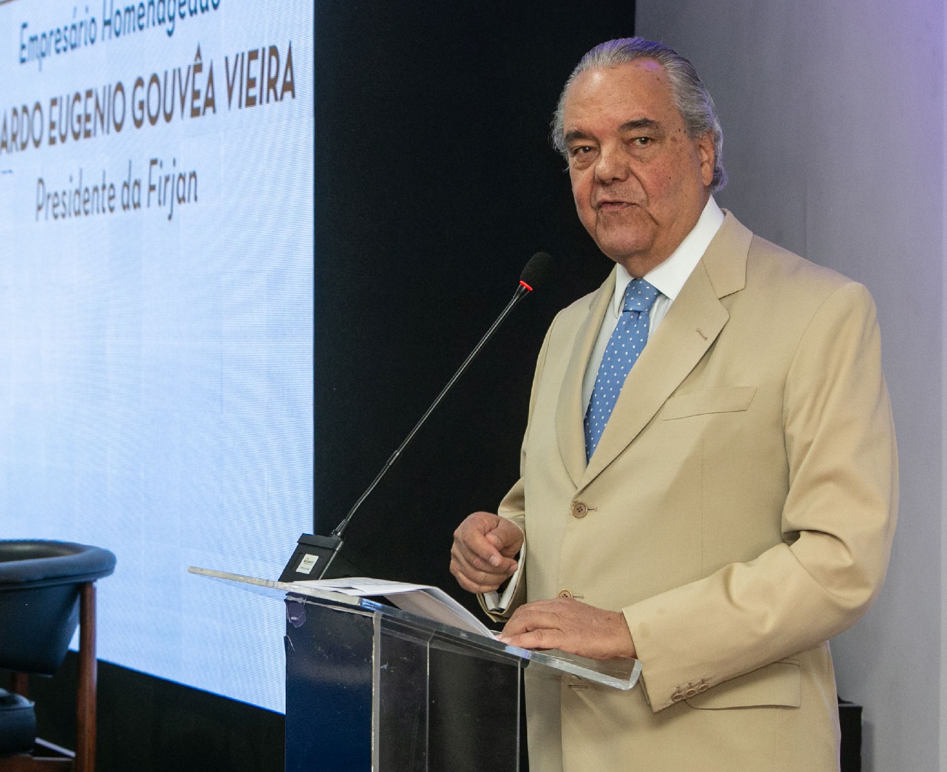 Armando Salgado, presidente do Conselho de Eméritos da Firjan/CIRJ, ao saudar o presidente Eduardo Eugenio, ressaltou que “dentre tantas contribuições prestadas ao longo de seus anos à frente da Firjan, uma merece um destaque especial, a sua sensibilidade em aglutinar, através do diálogo, as melhores condições da entidade que dirigia, objetivando ordenar os mais expressivos esforços por entre o empresariado do Rio de Janeiro, alcançando assim significativas ações em âmbito institucional junto aos organismos municipais, estaduais e federais”.