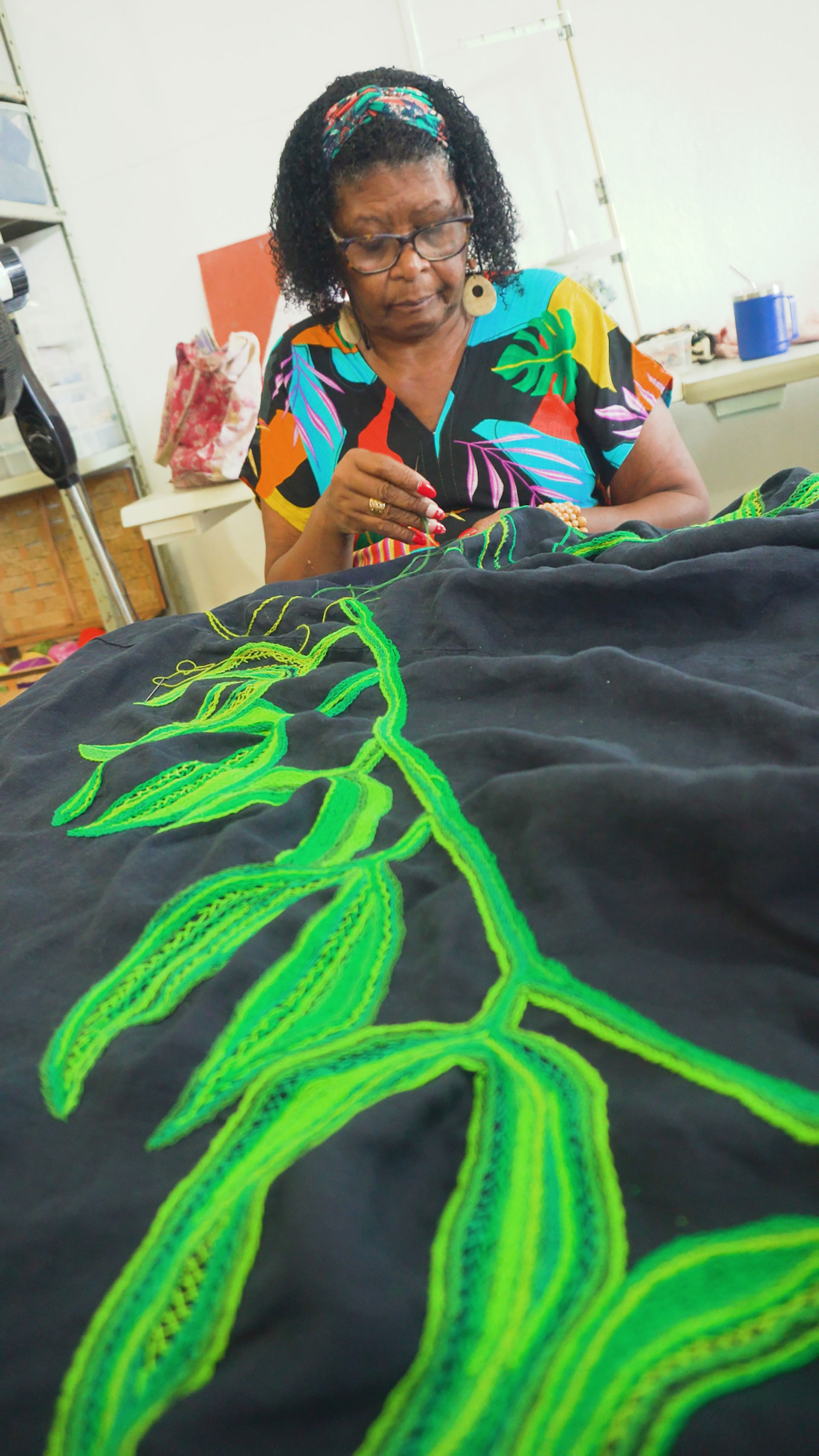 Além do tecido, as mulheres beneficiadas recebem aviamentos para a produção de roupas, acessórios, cangas ou brindes corporativos ou o que estiverem aptas a construir, ficando com 100% da renda apurada na comercialização. Em 2023, foram criados 157.347 produtos, com geração de R$ 2,7 milhões em renda.
