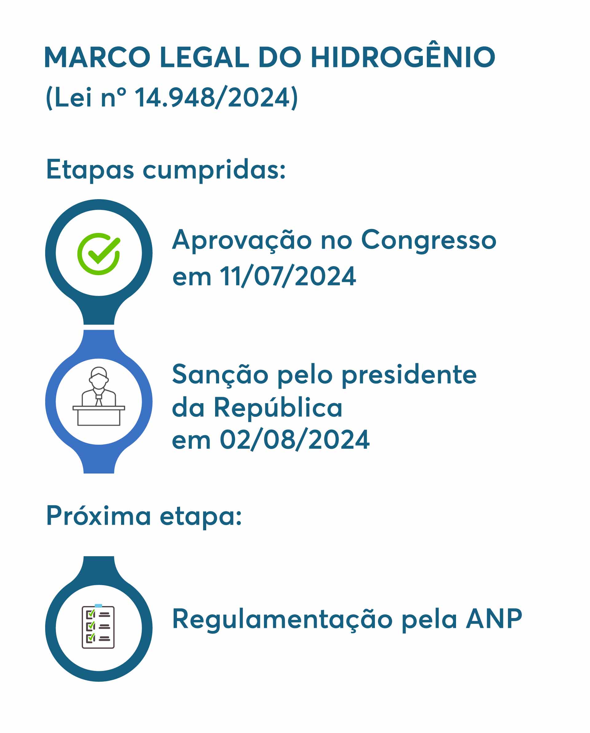 A aprovação do Marco Legal do Hidrogênio no Brasil – então Projeto de Lei nº 2.308/2023 convertido na Lei nº 14.948/2024 –, pelo Congresso Nacional em 11/7/24, apresenta, na opinião da Firjan, um avanço importante nas regras e diretrizes para o mercado. O texto cria um ambiente de segurança jurídica propício à atração de investimentos e realização de novos projetos industriais.