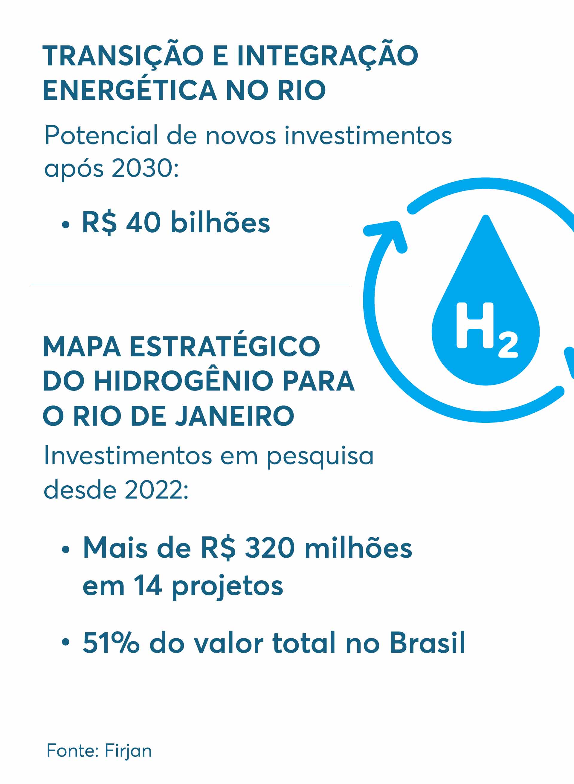 Todas as regiões do estado com grandes polos industriais também são potenciais para o uso do hidrogênio, o qual pode complementar o gás natural no processo de descarbonização da economia fluminense. “O hidrogênio adiciona energia para o país, como energético, além de poder ser usado como insumo industrial para diferentes produtos, como fertilizantes, metanol, aço e cimento. Isso vai contribuir com o processo de transição e integração energética e promover o desafio de o país buscar mais tecnologia e pesquisa para desenvolver o mercado de hidrogênio nacional”, analisa Thiago Valejo, gerente de Projetos de Petróleo, Gás, Energias e Naval da Firjan.