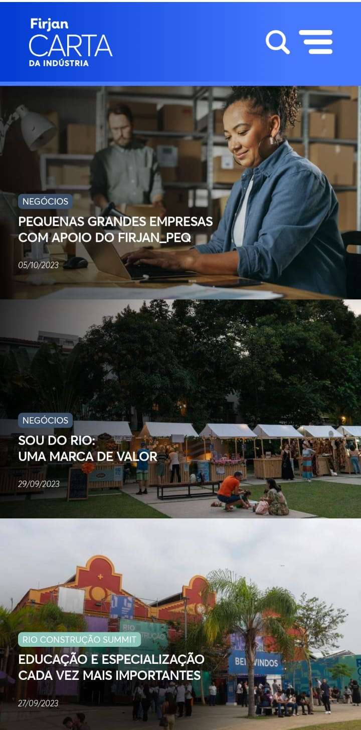 Criada como informativo semanal dirigido aos associados da Firjan, a Carta da Indústria completa 25 anos de publicação abordando temas de interesse do setor, entre eles política, governança e inovação tecnológica, sempre buscando passar para seus leitores a visão da federação sobre os caminhos para o fortalecimento das empresas no Rio de Janeiro. Hoje em formato digital, a revista mantém o tom informativo, enquanto privilegia a análise de questões que possam impulsionar a Indústria fluminense, destacando as pautas ESG (critérios ambientais, sociais e de governança).