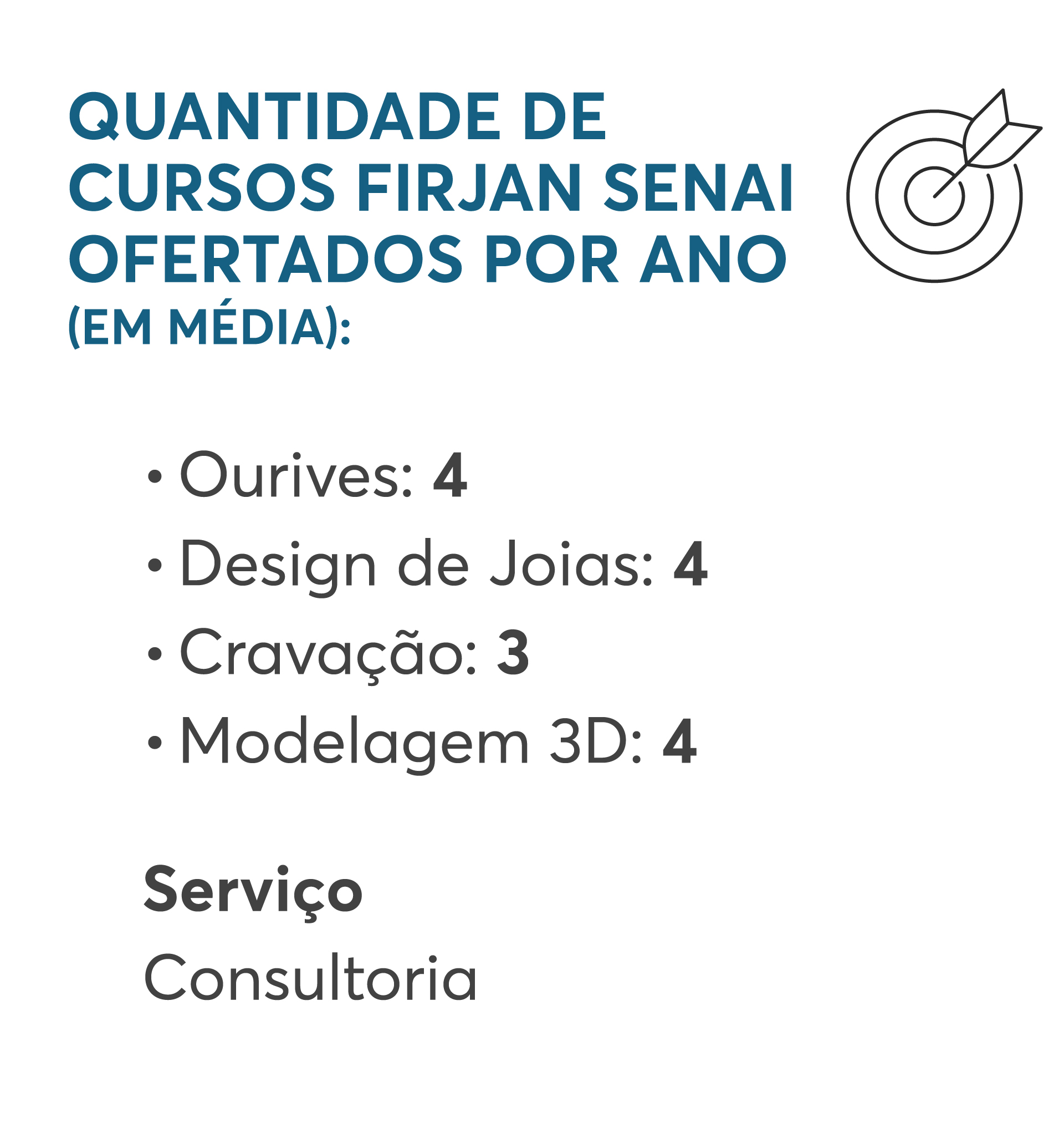 A entrada de jovens no setor de joias incentiva a renovação, seja com equipamento de fundição de alta tecnologia ou para atender a demandas personalizadas. A Firjan SENAI atende tanto profissionais, que querem melhorar a especialização dentro da indústria onde trabalha, quanto aqueles que estão começando no segmento, além dos que desejam expandir no mundo da internet, criando sua marca de produtos.